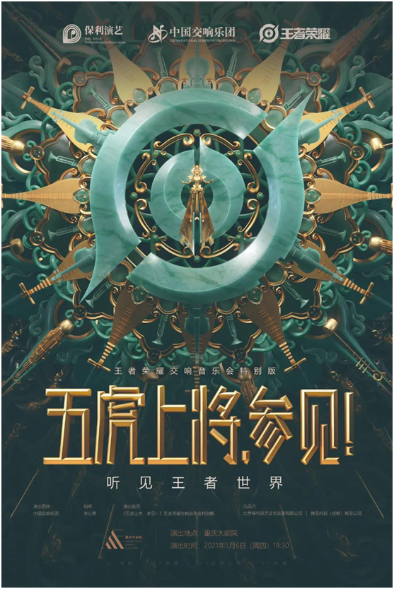 《五虎上将,参见!》由保利演艺、王者荣耀联合出品,保利演艺邀请了国内一流交响乐团中国交响乐团倾情演绎,著名指挥家李心草执棒,青年艺术家高天鹤参演,以专业的交响乐姿态,重现王者荣耀经典曲目,展示中国游戏音乐的魅力,带领广大玩家和乐迷声临王者峡谷。