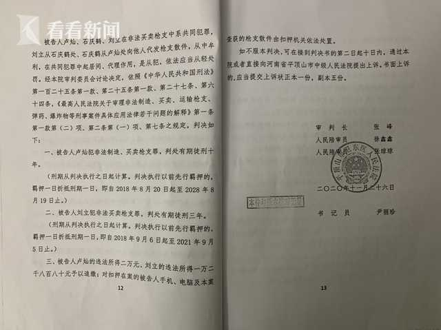 2019年4月,卢灿涉嫌非法制造、买卖枪支罪被平顶山市卫东区人民检察院提起公诉。2020年11月26日,卫东区法院一审作出判决,认定卢灿构成非法制造、买卖枪支罪,判处有期徒刑十年。