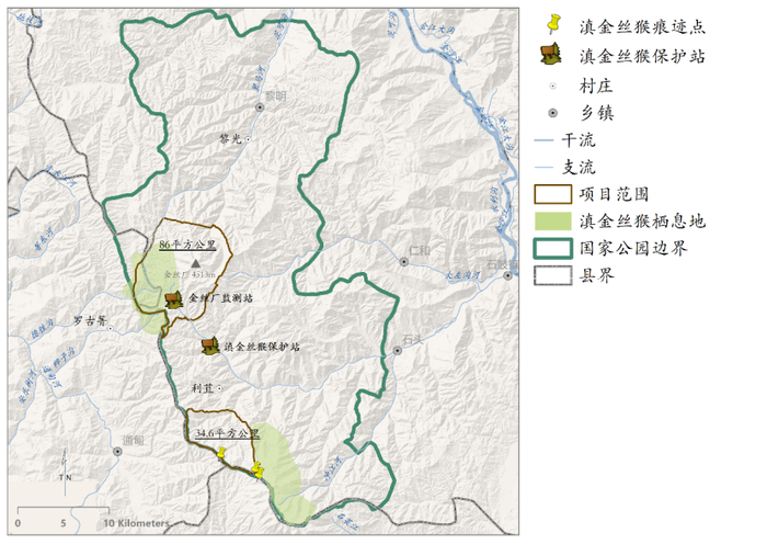 滇金丝猴野外种群分布