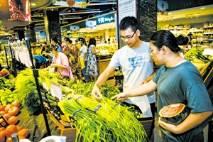 上午9点多钟,家住附近的市民于女士在旺佳旺超市(滨江帝景店)挑选了冬瓜、大白菜、白萝卜3种菜后告诉记者:“超市里有1元菜供应,价格便宜品质好,让人放心。”据了解,为落实省、市政府平价菜保供惠民行动专班工作要求,海口菜篮子集团、光大银行、旺佳旺超市联手开展“平价菜保供惠民行动”,在海口35家旺佳旺超市设立平价菜专柜和一元菜专区,为市民提供新鲜、实惠的平价菜。