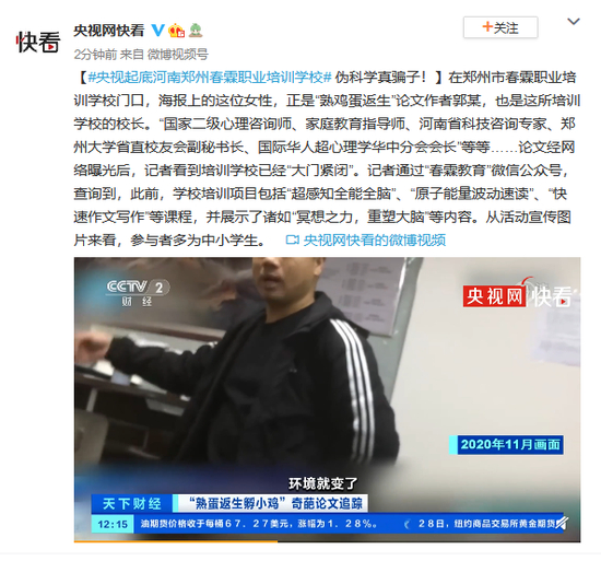 原标题:央视起底河南郑州春霖职业培训学校 伪科学真骗子!