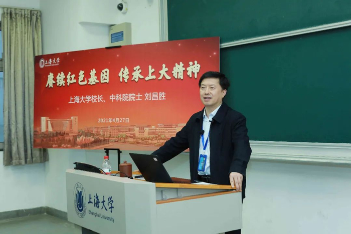 2021年4月27日晚,刘昌胜校长走进《中国近现代史纲要》课堂,为钱伟长学院近100名本科生上了一堂主题为“赓续红色基因,传承上大精神”的思政课,学校青马工程班、人才学院30余名学员也共同聆听了此次课程。