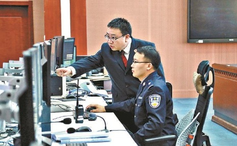4月29日,内蒙古自治区小黑河地区检察院巡回检察组走进呼和浩特高度戒备监狱,对监狱刑罚执行和监管活动进行常规巡回检察。图为检察官在监狱指挥中心,通过调取近15日录像,查找监管问题。 张星远摄