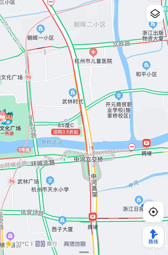 3、绕城东线下沙大桥金华方向20K后方断续大流量缓行至7K。
