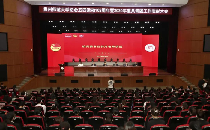 来源:贵州师范大学为喜迎建党100周年,纪念五四运动102周年,4月30日,贵州师范大学纪念五四运动102周年暨2020年度共青团工作表彰大会在花溪校区礼堂举行。校党委书记韩卉、副校长欧阳恩良出席。校党委副书记银熙惠主持。校党委宣传部、研究生工作部、校团委等相关单位负责人及师生代表参加。