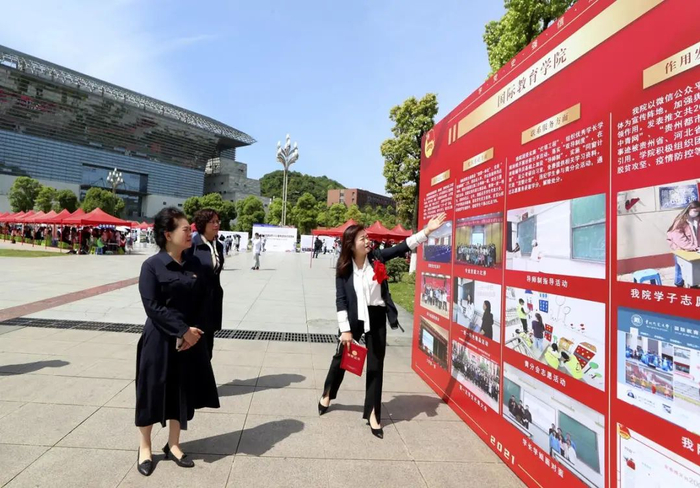 表彰大会在激情慷慨的团歌声中圆满落下帷幕。会后,出席大会的校领导来到“贵州师范大学2020年度共青团荣誉长廊”,观看了基层团委工作展板和荣誉展板,与团员青年亲切交流,在五四青年节来临之际,向广大团员青年致以节日的问候。