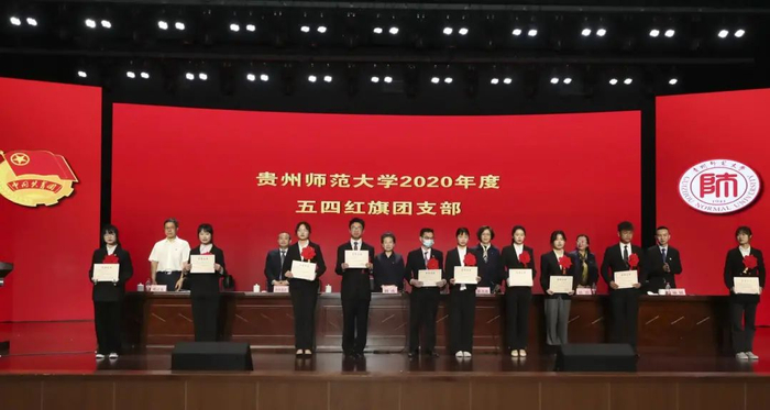 欧阳恩良宣读《关于表彰贵州师范大学2020年度共青团工作先进集体和先进个人的决定》。随后,获得2020年度“五四红旗团委”“五四红旗团支部”,2020年度优秀共青团干部的老师,2020年度优秀共青团员,2020年度“十佳团支部和十佳团支书”代表依次上台受领奖章。