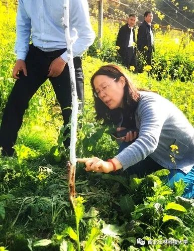 黄丽丽教授在周至县猕猴桃园里给