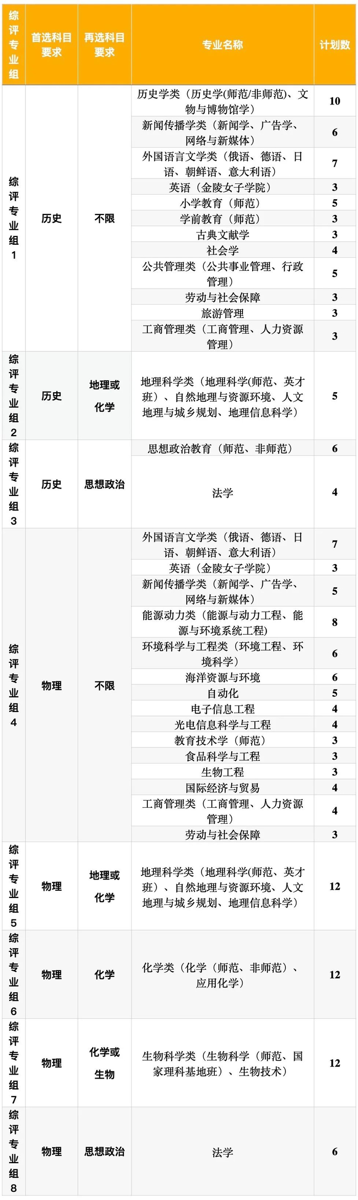 考生须选择一个符合选考科目要求的综评专业组进行报名,招生专业名称以江苏省教育考试院发布的2021年《招生计划专刊》为准。