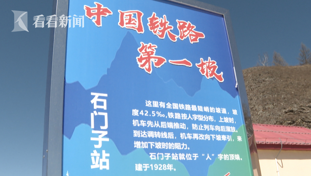 而在这趟列车途经的石门子站的人字形铁路有中国铁路第一坡——42.5‰大坡道,慢火车在这条人字形铁路上,需两个火车头同时工作,一个车头拉一个车头推,被牵引机车倒着推上大坡成了最独特的风景。 这个坡度高达千分之42.5度,全长1.8公里路程,相当于爬了20层楼。