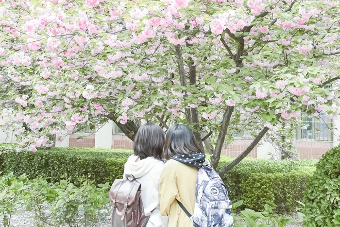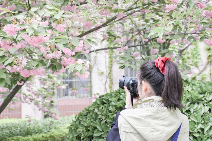 风恬日暖荡春光,走在校园的路上,人间四月,芳菲依然。草木蔓发,春山可望,目之所及,皆是不尽春色。“阶下草犹短,墙头梨花白。”春天美好且轻缓,海棠与樱给这个季节染上了它独有的娇妍,柳絮飘飞,下了一场温暖的白雪,微风拂过,连花香也夹杂着温柔。