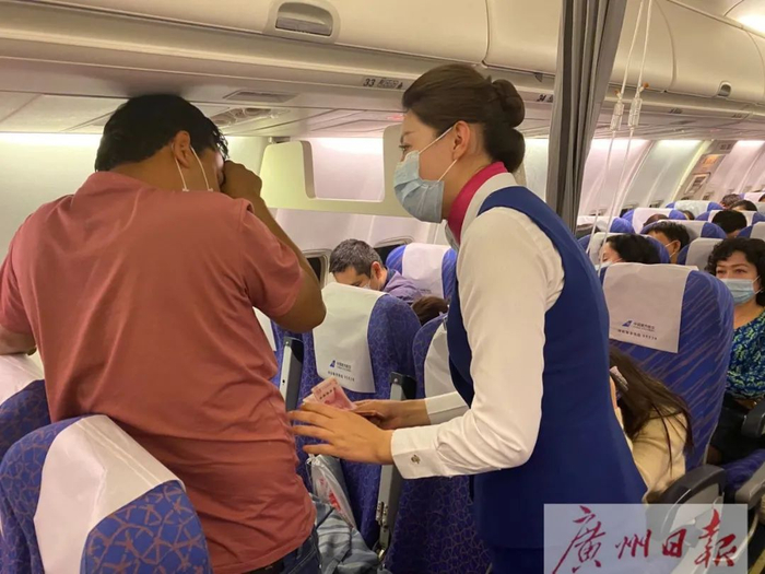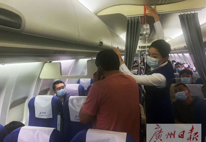 在客舱中,接到保障通知后,机组立即分工协作。23:49,飞机滑回停机位,乘务组协调旅客预留出了宽敞的空间,准备好了冰块等物品;23:54,负责此次航班保障任务的乘务长赵燕再次打开舱门,小旅客和家属在医护人员的陪同下登机;00:00,航班重新关门推出,00:09,航班顺利起飞!