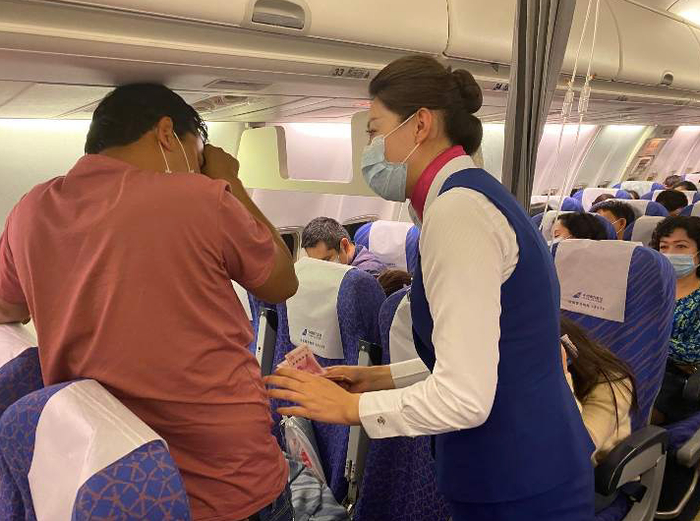 这时,医生过来我跟交接乘机注意事项,他叮嘱我一定不可以让孩子睡着,避免大出血,还要更换冰块,保持孩子断臂的温度。飞机起飞后,为了让孩子保持清醒,我和同事准备了湿毛巾帮他擦脸,播放手机视频、音乐给孩子听,制造出不同的声音去刺激他,避免孩子睡着。为了争取更多的抢救时间,我们与地面沟通,安排机场救护车第一时间来接机,并告知家属救护车已经联系到位,飞机也会停在离机场出口最近的停机位,我们会以最快的速度将孩子安全送达。在飞行过程中,有一些旅客主动帮助我们一同照看孩子。我们机组成员将身上的现金都凑到一起,交给孩子家属,希望能给他一些帮助。孩子家属看到我们这些爱心举动,眼眶也湿润了。