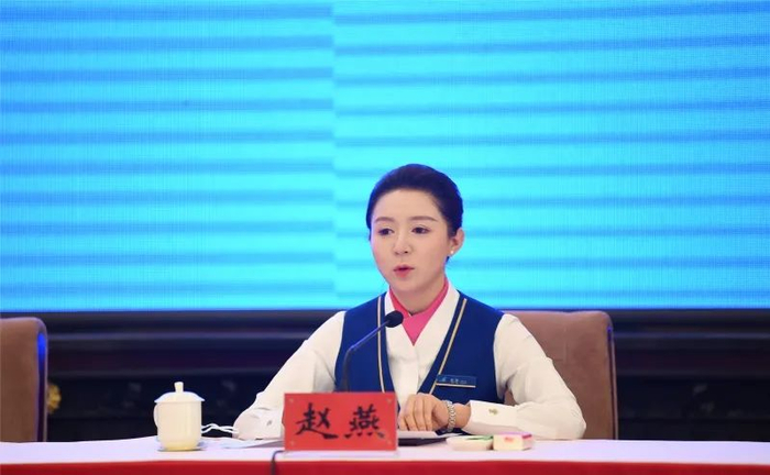 5月4日,南航新疆分公司客舱部乘务长赵燕在新闻发布会上发言。石榴云/新疆日报记者王臻摄