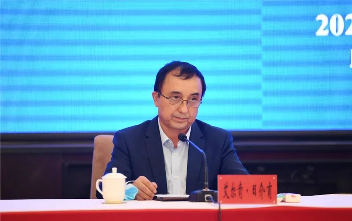 5月4日,新疆维吾尔自治区人民政府新闻发言人徐贵相在新闻发布会上发言。石榴云/新疆日报记者王臻摄