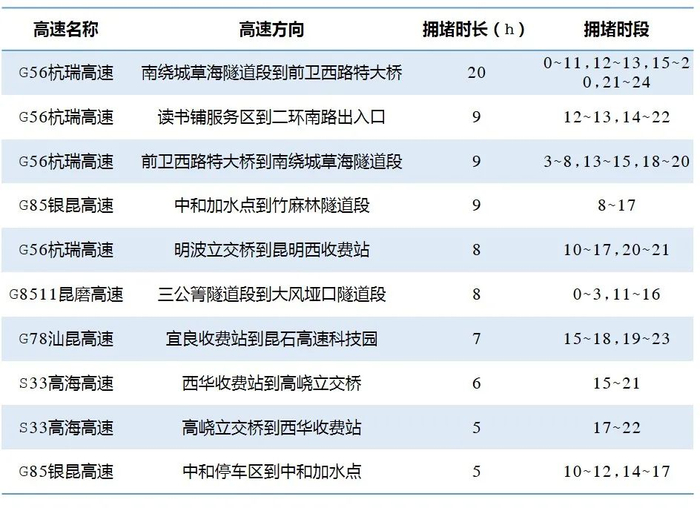 5月5日高速易拥堵缓行路段