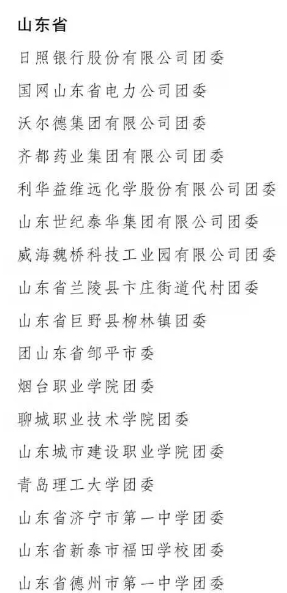 日前,共青团中央作出表彰决定,授予285个团组织全国五四红旗团委称号,授予370个团组织全国五四红旗团支部称号,授予447人全国优秀共青团员称号,授予345人全国优秀共青团干部称号,并追授因公殉职的李莎、拉巴平措同志全国优秀共青团员称号。山东共有17个团组织获得全国五四红旗团委称号,25个团组织获得全国五四红旗团支部称号,29个人获得全国优秀共青团员称号。