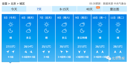 北京今天天气晴朗