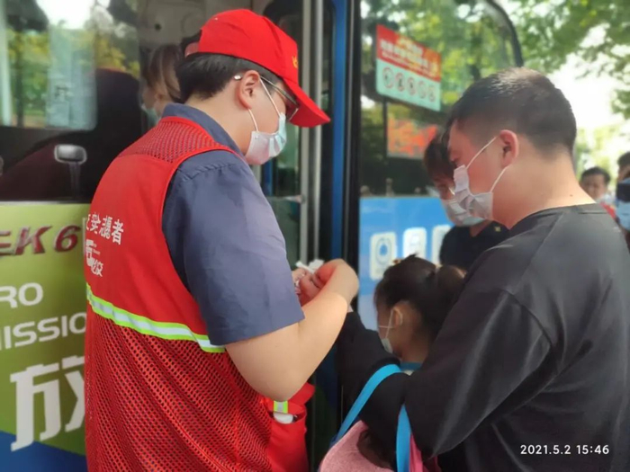 原标题:五一志愿日记 |熙攘人群中的那一抹红