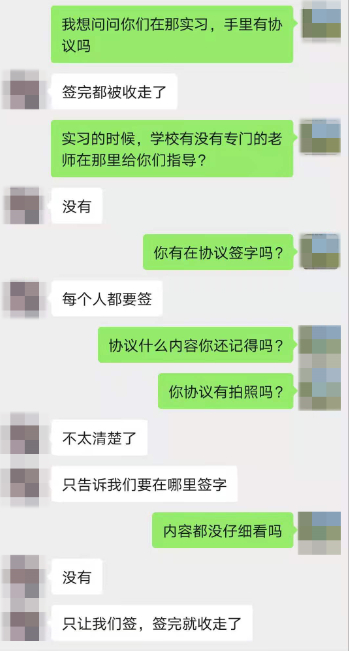 △ 学生透露实习协议签完后被学校统一收走