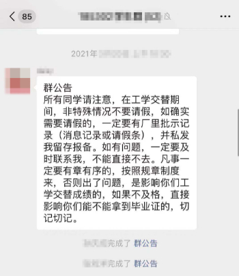 △班主任曾公开表示,顶岗实习将与毕业证“挂钩”