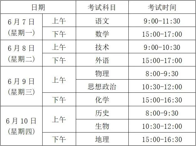 今年浙江高考语文、数学、外语与选考科目考试时间安排如下: