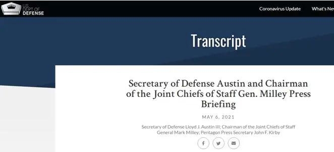 根据美国防部官网公布的实录,当天的记者会上,有记者提问称,关于中国的运载火箭残骸将于何时何地落地,最新估计是什么?你们认为这是对美国的潜在威胁吗?如果有必要的话,你们有没有击落它的计划?
