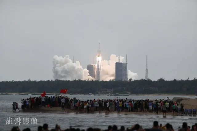 4月29日11时许,海南文昌,中国用长征五号B遥二运载火箭发射空间站天和核心舱。图源:澎湃新闻