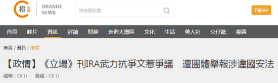 香港橙新闻报道称,在《苹果日报》近期受到多方批评之际,其难兄难弟“立场新闻”似乎不甘寂寞,一篇题为《从北爱尔兰抗争经验看香港抗争运动的未来》的转载文章,引发不少人质疑触犯香港国安法,最后只好删文了事。