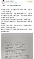 4月13日和14日,随着这番言论迅速在网络上发酵,署名为“Saebyeolbe56”的微博账号发了两篇道歉的微博。不过该账号目前还未获得实名认证。↓