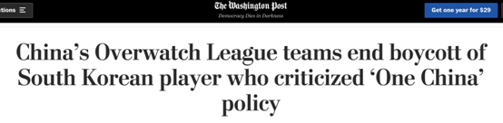 《华盛顿邮报》7日也报道称,守望先锋中国战队结束了对SBB的抵制。↓