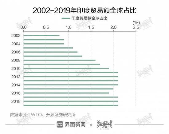印度贸易额全球占比仅2.1%