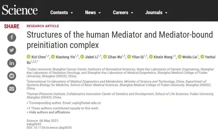 原标题:又一篇Science!复旦大学徐彦辉团队揭示完整转录起始超级复合物结构与功能