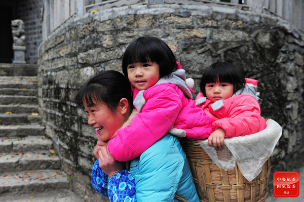 一位母亲一边务工一边照顾双胞胎女儿,背着两个孩子走过艰难的路程,妈妈的双手是女儿的依赖,是母亲的深情。(安徽省来安县纪委监委供 徐斌 摄)