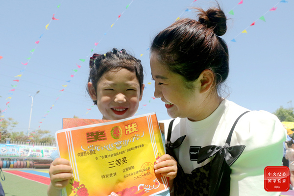 “妈妈,我得奖啦!”母亲是孩子成长路上永远的陪伴者,女儿在幼儿园“在廉洁的清风中成长”讲故事比赛中表现优异,拿着奖状和奖品绘本向妈妈展示。这也是女儿送给妈妈的一份母亲节礼物。(湖北省枝江市纪委监委供 任薇 摄)