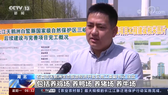 湖北石首市天鹅洲生态旅游经济开发区党工委副书记 徐斌:对沿长江故道的所有养殖场,包括养鸡场、养鸭场、养猪场、养牛场,这一系列的养殖户进行搬迁、整改和拆除,现在基本上旁边源头污水已经得到了100%的解决。
