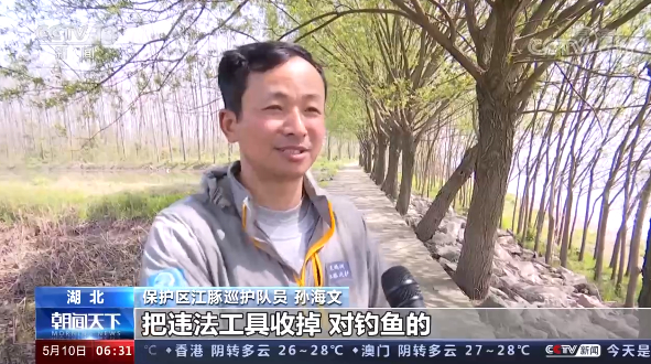 保护区江豚巡护队员 孙海文:协助他们(保护区工作人员)一起把违法工具收掉。对钓鱼的,确实是第一次不知道情况的,对他进行劝阻,下次让他不要来了,知道保护区是禁钓的,就是一种宣传。再就是周边围垦事件,以防有人用挖掘机挖鱼池,再就是洲滩放牧对水质不好,做一些宣传。