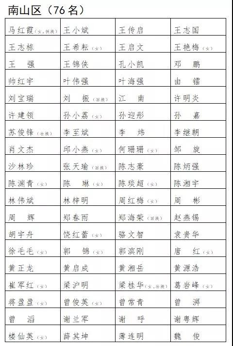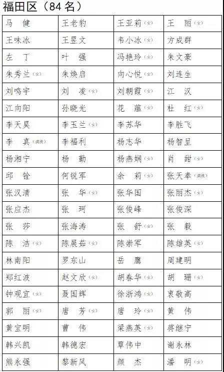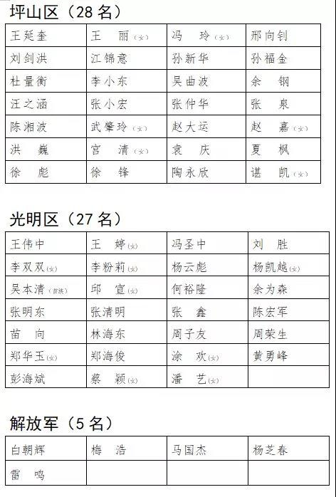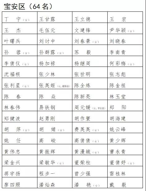 党的十九大代表、宝安区社会福利中心职员费英英,全国脱贫攻坚先进个人、宝安区人民医院党办主任兼普外二区副主任王甘露等一批先进模范代表也在代表名单中。