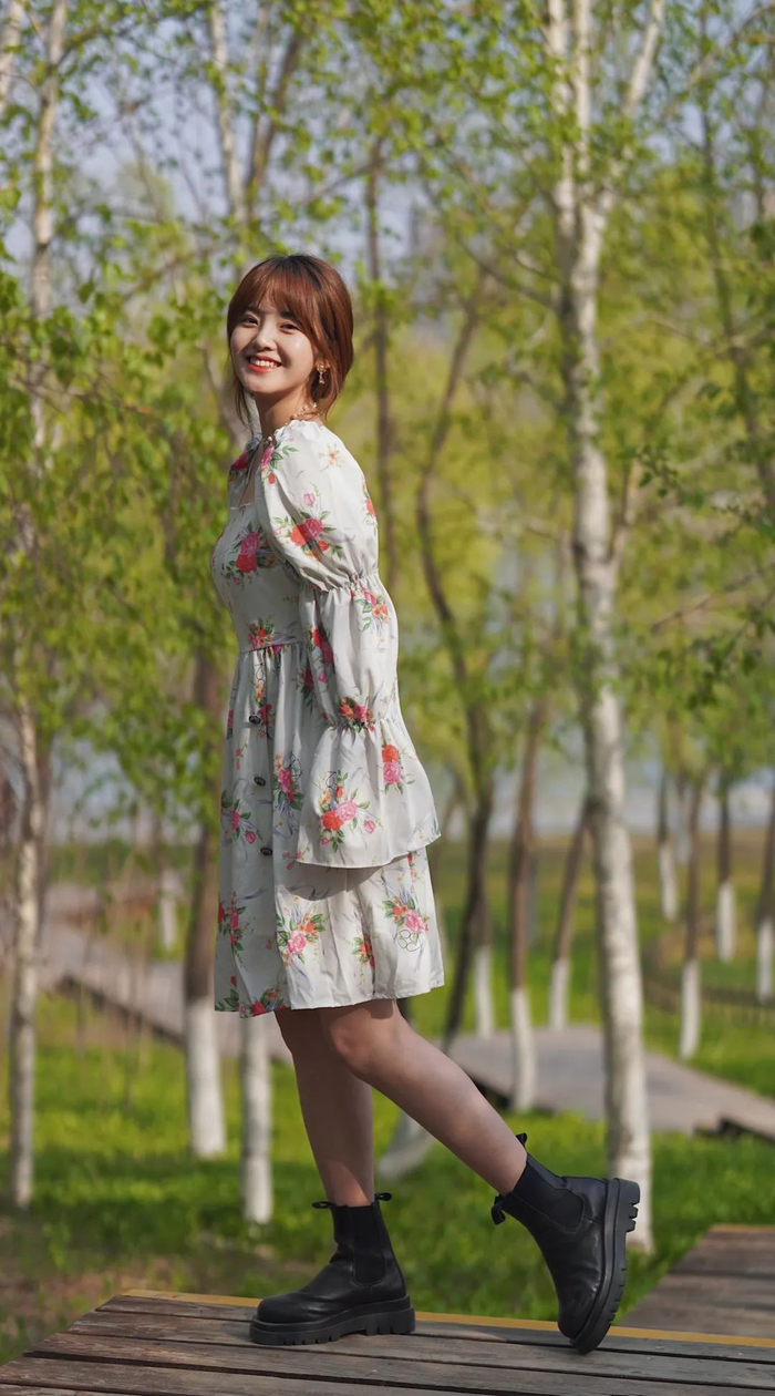 复古的碎花裙加上马丁靴