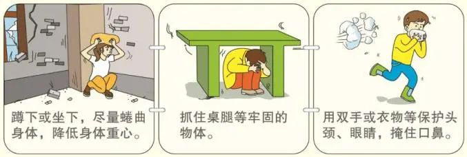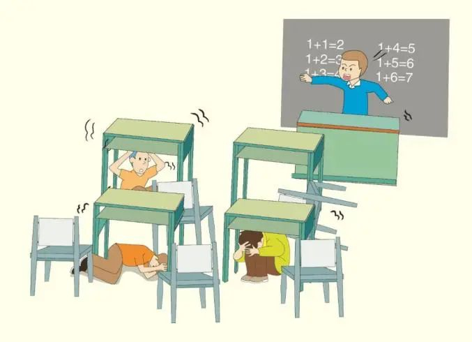 ①正在学校上课时,要在教师指挥下迅速抱头,躲在各自的课桌下。或有组织地迅速撤离教室,到安全的地方。
