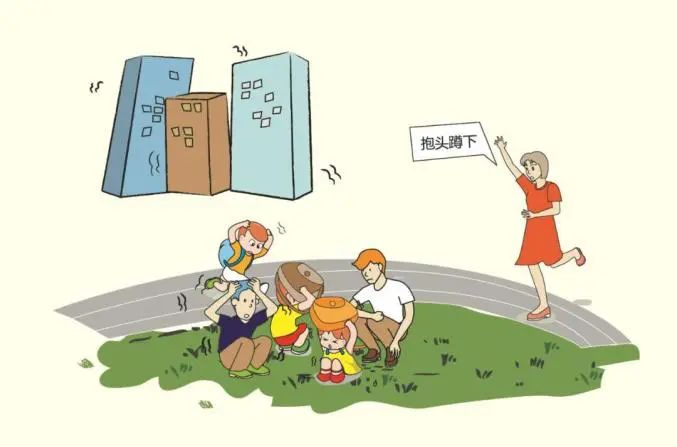 ① 就近选择开阔地避震:蹲下或趴下,以免摔倒。不要乱跑,避开人多的地方。不要随便返回室内。