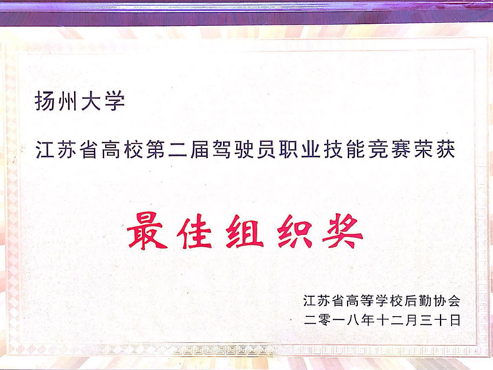 多年以来,扬大运输服务中心(驾校)凭借优秀的管理团队、高素质的驾驶员、教练员队伍、安全可靠的运行、文明优质的服务、规范合理的价格得到了广大师生员工的一致好评,多次荣获省、市主管部门授予的运输“先进集体”、“安全管理先进单位”、“安全示范车队”以及驾培主管部门颁发的“驾培示范先进单位”、“文明教学先进单位”、“五星驾校”、“AAA级诚信驾校”等荣誉称号。