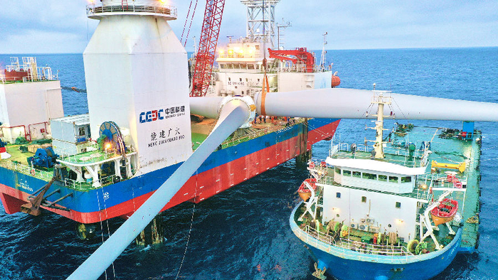 5月6日,由中国能建广东院勘察设计、广东火电参建的国内首个近海深水区海上风电场——华电阳江青洲三500兆瓦海上风电场完成首台风机吊装。