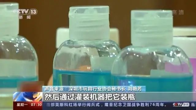 深圳市玩具行业协会秘书长刘艳芳介绍,“小作坊基本上都是用水加各种相关的化学原材料勾兑到一起,能达到这个效果就是了。”