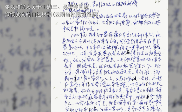 一则由云南省档案馆馆藏的《张永和等人关于王德三、吴澄等同志慷慨就义的口述材料》纸页,将我们的思绪再一次带回到了1930年的最后一天。