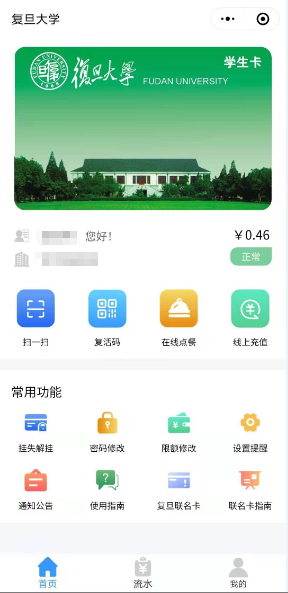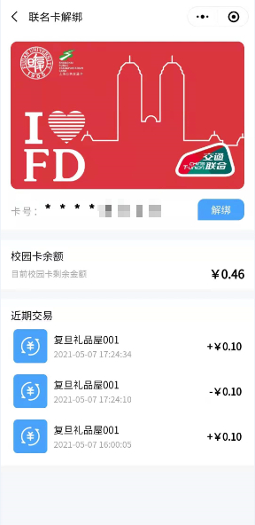 (温馨提示:校内消费时,复旦联名卡和虚拟校园卡中的“复活码”一样,都是直接扣除实体校园卡的账户余额哦~)