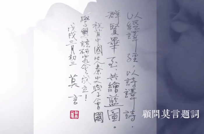 著名作家莫言为中国先秦史学会国学双语研究会题词