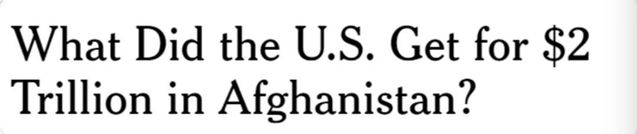 2019年,《纽约时报》提出了同样的问题,“美国在阿富汗花费了2万亿美元,究竟得到了什么?”