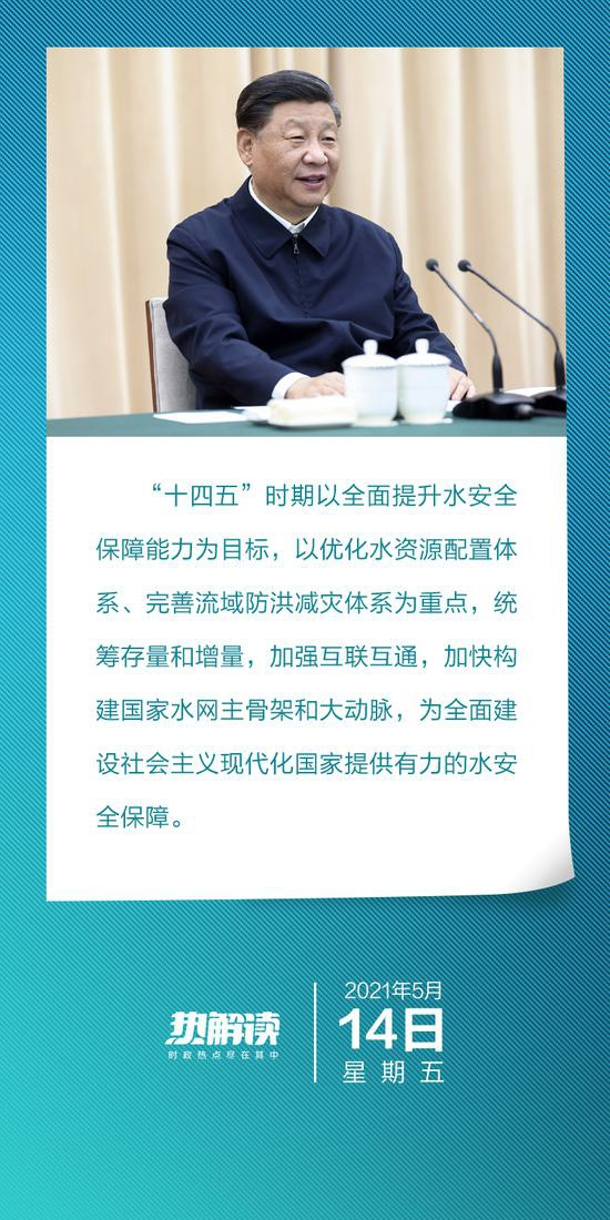 这场会议中,习近平总书记还特别强调了“一张网”和一个能力:“十四五”时期以全面提升水安全保障能力为目标,以优化水资源配置体系、完善流域防洪减灾体系为重点,统筹存量和增量,加强互联互通,加快构建国家水网主骨架和大动脉,为全面建设社会主义现代化国家提供有力的水安全保障。