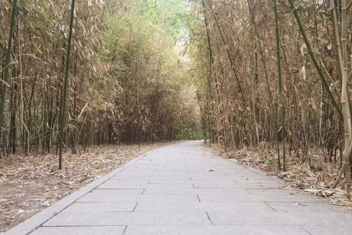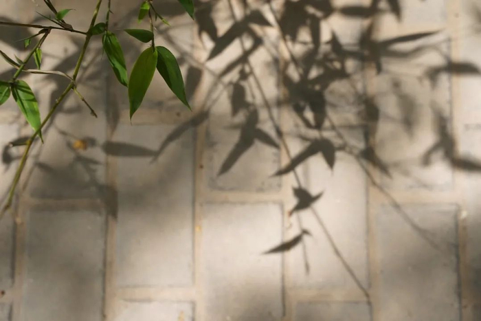 小路上影影绰绰地投下竹叶的影子,像是孩童拿着剪刀快乐地修剪太阳。每有行人走过,影子便跟随他轻柔地摇晃。